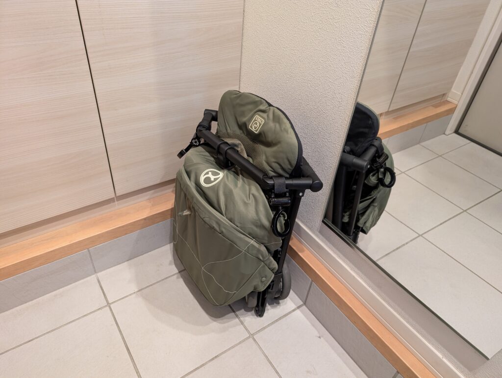 砂利道に近い土手でも割とスイスイ進めるので、抱っこ紐との併用スタイルには欠かせません。
